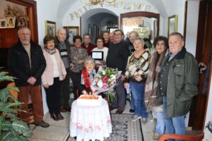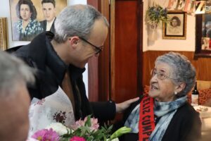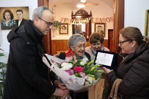 Con motivo de su centenario, hoy ha recibido la visita de nuestro alcalde, Carlos Caro, y de la concejala Mercedes Pérez, quienes le han hecho entrega de un hermoso ramo de flores y una placa conmemorativa en reconocimiento a tan señalada celebración.
