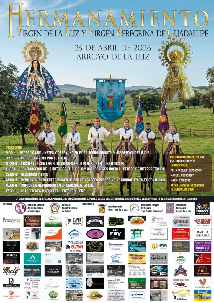 El Ayuntamiento de Arroyo de la Luz ha acogido la presentación oficial del hermanamiento entre la Virgen de la Luz y la Virgen Peregrina de Guadalupe, un acontecimiento que se celebrará el próximo 25 de abril de 2026 y que promete convertirse en un hito para la localidad.