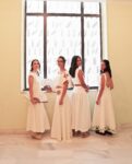 Las modelos, Desiré Castaño y Marta Holgado (jugadoras del Extremadura Arroyo de voleibol), María Gallardo y Marta Royo, (familiares de las bordadoras), desfilaron espectaculares con los diseños de la colección ‘Alma Rural’ y lucieron bonitos peinados gracias a la colaboración de la peluquería arroyana Olalla Manzano.